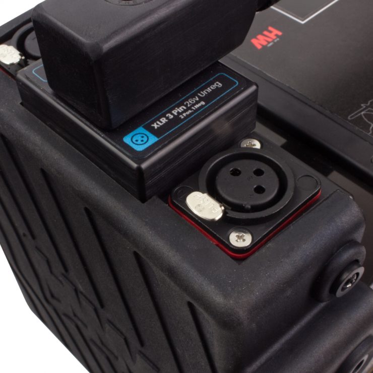 Dual Voltage Output: Catering to a variety of equipment needs, it features two XLR 3 pin outputs for 26V (16A max per socket) and two XLR 4 pin outputs for regulated 12V (10A max per socket).