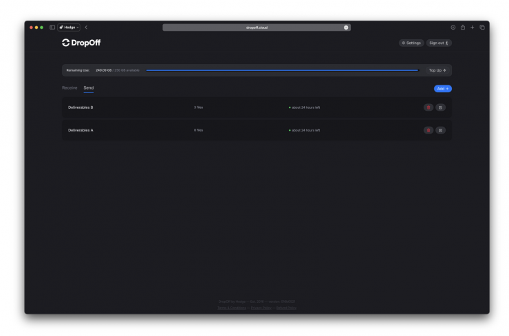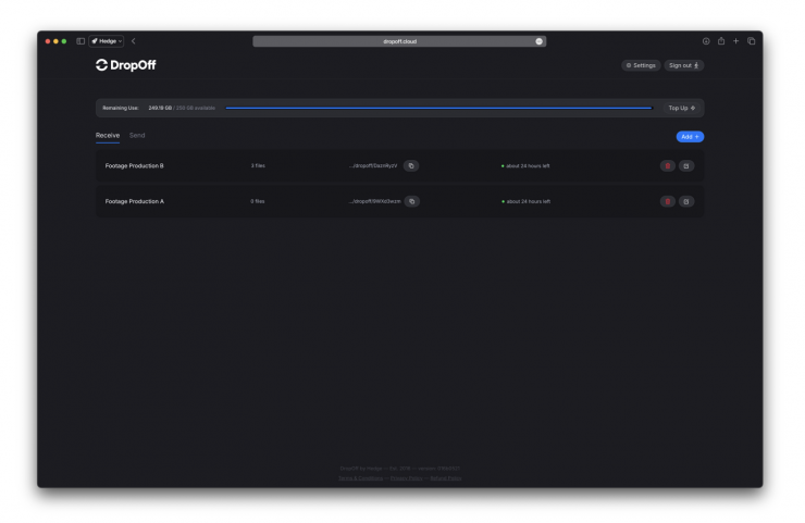 Hedge DropOff is a web-based file sharing platform for creative workflows.
