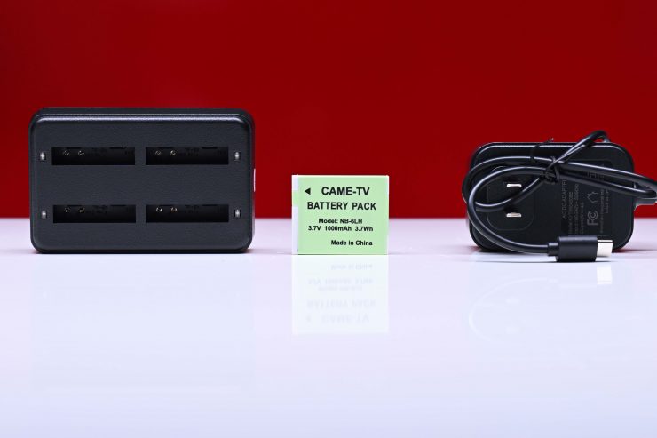 With the CAME-TV KUMINIK8 Full-Duplex Wireless DECT Intercom System with 5 Single-Ear Headsets kit, you get 5x batteries and a 4-port charger. I found this a little odd because you need to charge 5 batteries, but you only get a 4-bay charger. As a comparison, the competing Hollyland Solidcom C1 Pro with 6 Headsets kit comes with 12x batteries and an 8-bay charger.