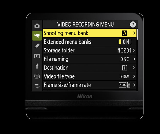 With the new firmware you can store your favorite video recording menu settings in their own shooting banks, totally separate from the photography settings. This allows you to recall resolution and frame rate combinations, RAW settings, file types and more a lot quicker.