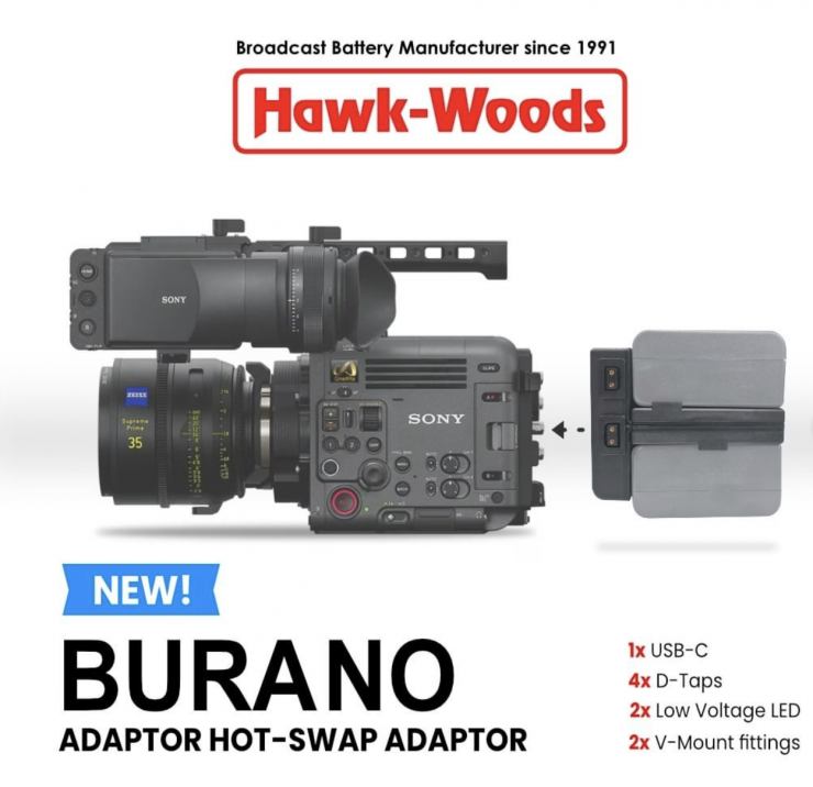 Hawk-Woods has a new Sony BURANO Hot Swap Adapter, which they are calling the Hawk-Woods VL-OCIR. It looks to be well suited for use with the BURANO given its form factor and design, but you could also use it on any camera with a V-lock battery plate.