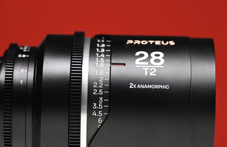 The mechanical consistency of the Proteus 2x Anamorphic lenses across the range is pretty good. The 28mm T2 has very nicely weighted and smooth aperture and focus rings.