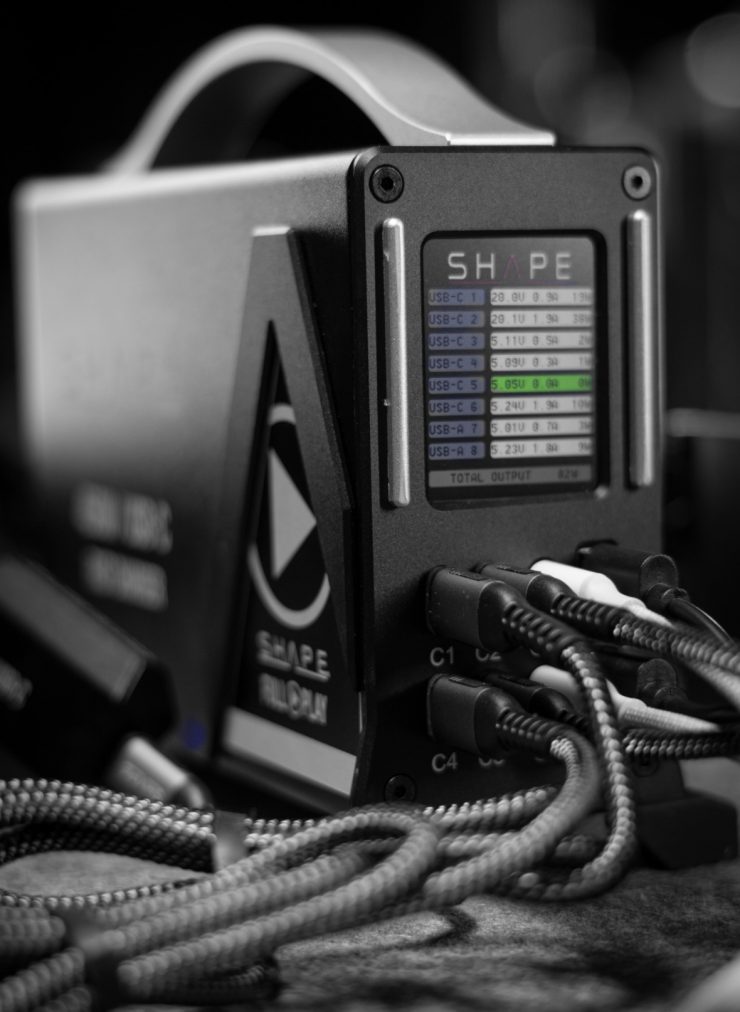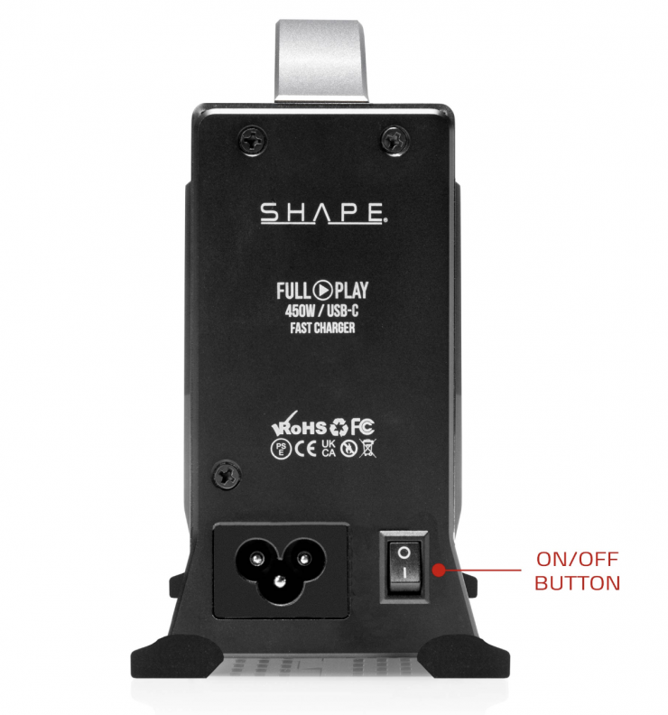 SHAPE’s 450W USB-C Fast Charger Kit for Gold Mount/V-Mount/B-Mount Batteries features 4x USB-C ports and 2x USB-A Ports. It enables you to charge your Gold-Mount, V-Mount and B-Mount batteries at the same time with only one charger with the D-tap to USB-C charging adaptors.
