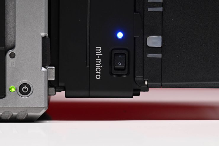 Essentially what is happening is that if the ml-micro hasn’t been charged it will draw power from the attached battery and store it so that when you take a battery off, your camera or accessory will still remain powered on and running. It’s acting as a small battery and it will keep drawing power from the attached battery until it is fully charged. This doesn’t take a lot of time, and once the ml-micro adapter is fully charged you will see a green indicator next to where it says Ready Charging.
