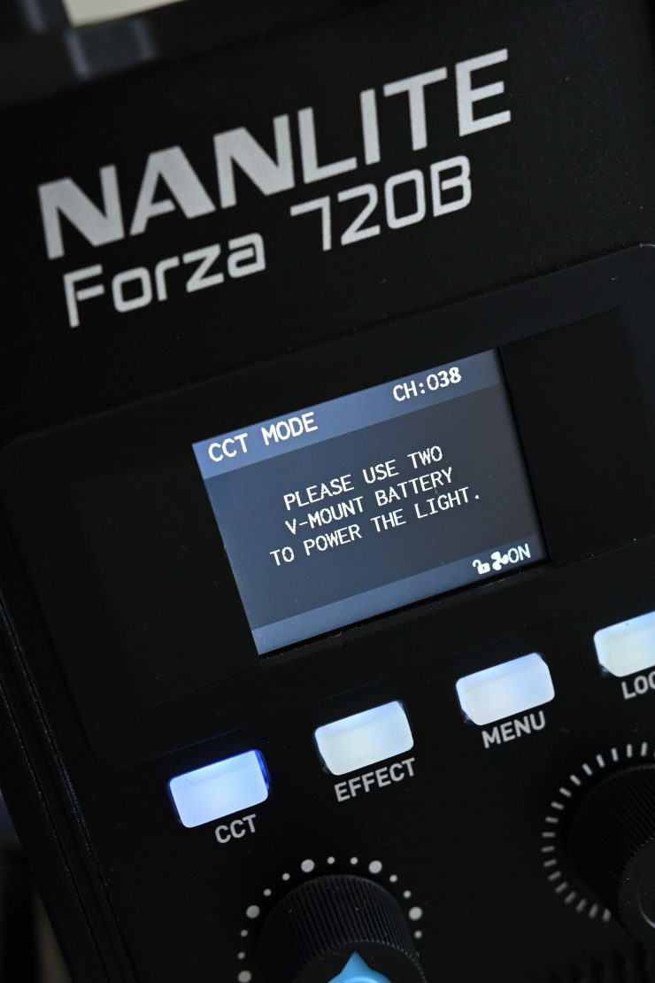 With high-powered lights, you won’t be able to use two FXLION BP-HP600 batteries to power fixtures like the Aputure LS 600d/600b/600c Pro or Nanlite Forza 720d/720b at full output. If you want to run the Aputure LS 600c Pro at full output remotely then you will need to use 26V 18A batteries. 14.4V 15A or 26V 8.5A batteries will only allow you to run the light at 50% output, regardless of their capacity. With the Nanlite Forza 720d/720b you need two V-lock batteries otherwise it won’t even turn on.