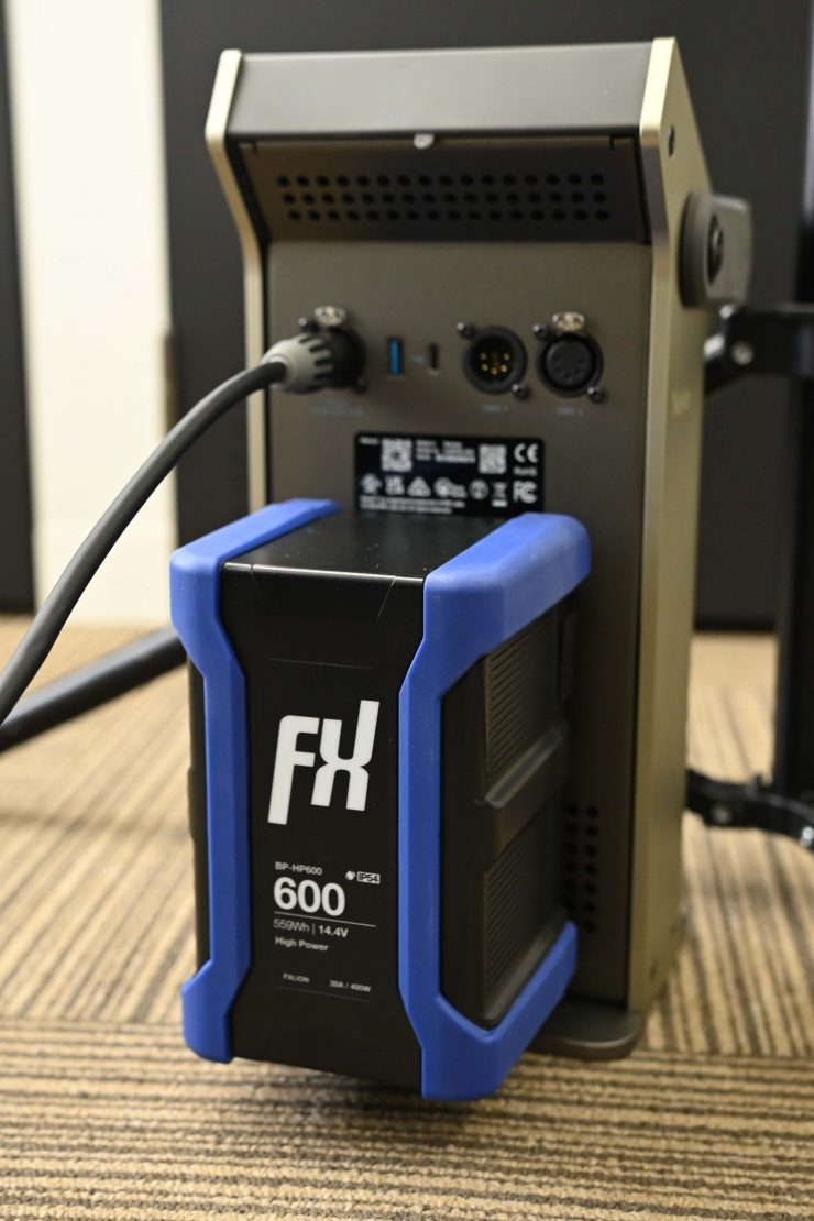 I could also power a light like the Z CAM ZOLAR Blade 60C (which draws 140W) at 100% output for a very long time from the FXLION BP-HP600 battery.