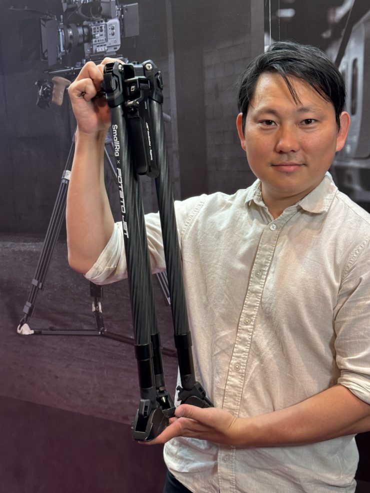 At NAB 2024, SmallRig Wass showing their new SmallRig x Potato Jet Tribex Hydraulic Carbon Fiber Tripod. This is being touted as a faster, more portable professional tripod.