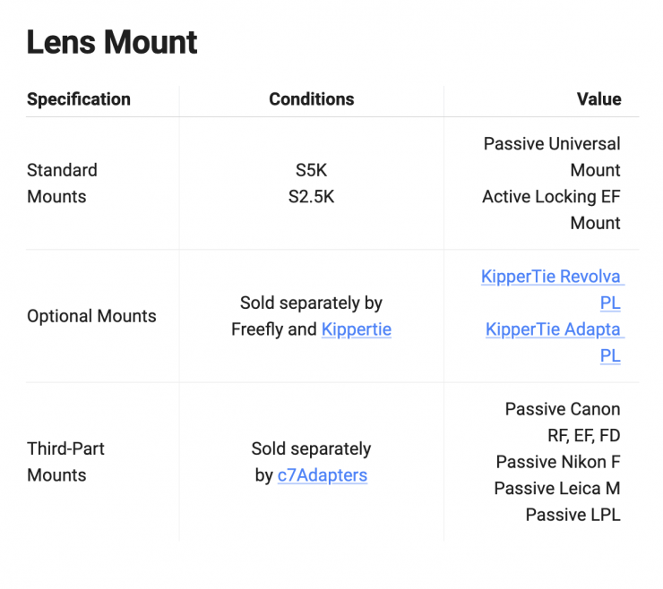 If that wasn’t enough they are also announcing an active EF mount that can control aperture and focus of select EF lenses. Ember features an adaptable chassis that allows for user customization of lens mount. Ember S2.5K ships with an Active EF compatible lens mount.