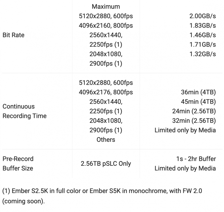The Ember S2.5K retails for $24,995.00 USD and it will start shipping in around 6 weeks. Firmware Upgrades to Ember S5K will also be available in May.