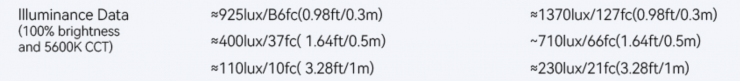 Above you can see what ZENIKO quotes as the output for the fixtures when used at 5600K at a variety of distances. As you can see these claimed outputs are pretty low