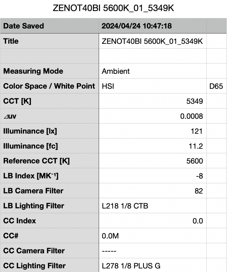 The ZENIKO OT40 Bi produced a CCT reading of 5349K, was not great and it was more than 250K from being correct.