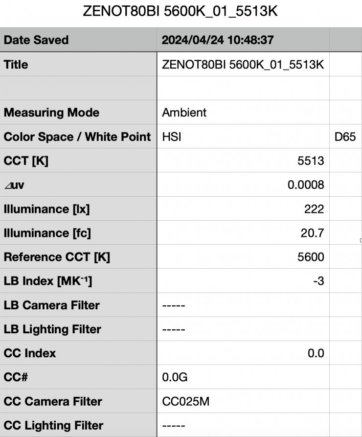 The ZENIKO OT80 Bi produced a CCT reading of 5513K, which was a pretty good reading and a lot better than the reading I got from the OT40 Bi.
