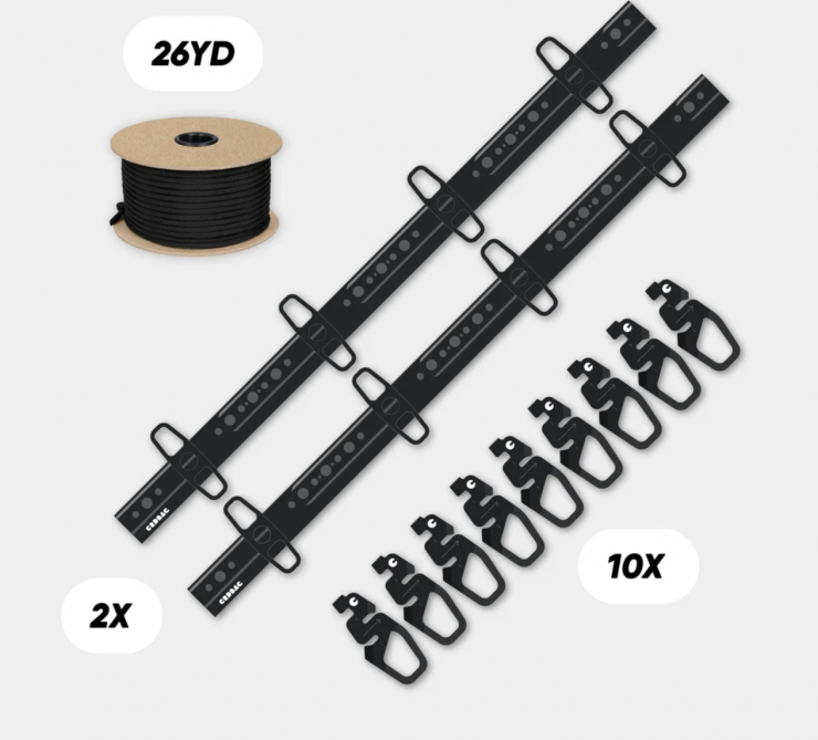 • 2 x Black aluminium tracks with 8 mounts (610 mm / 24″)
