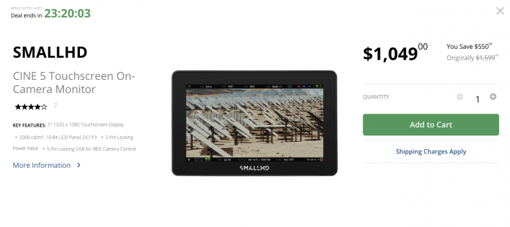 The SmallHD CINE 5 Touchscreen On-Camera Monitor is back on sale for $1,049 USD, which is big saving of $550 USD.
