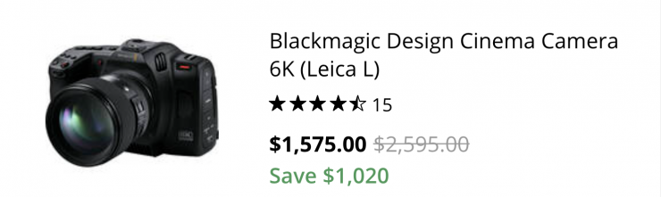 Blackmagic Design has announced a limited time price drop for the Blackmagic Cinema Camera 6K. For a limited time, you can get the next generation digital film camera with 6K full frame sensor, OLPF and L-Mount. Plus Blackmagic RAW and H.264 proxy recording for cloud workflows for only $1,575 USD, which is saving of 40%. According to Blackmagic Design this deal has limited availability.