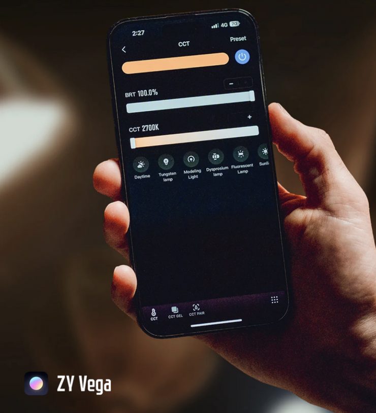 - ZY Vega App: Tweak settings on the fly, orchestrate multi-light setups