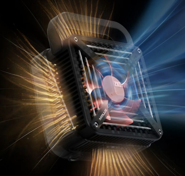 ZHIYUN’s strategy is to make lightweight and compact high output COB lights by essentially putting a COB LED in front of a large cooling system.