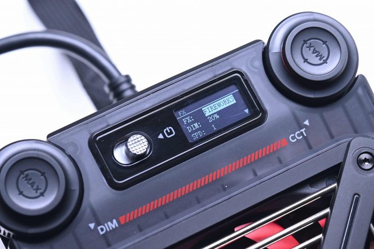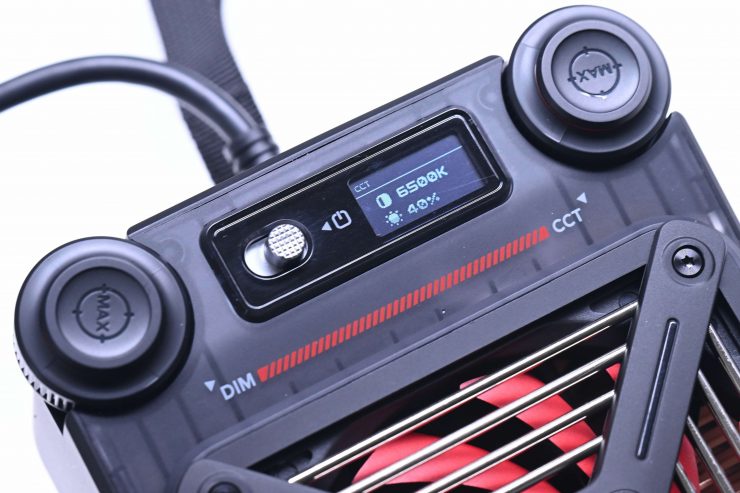 By pressing both the color temp and brightness dials you can activate MAX Extreme mode. In this mode you get an increased output of 60% (500W). The catch with this mode, according to ZHIYUN, is that the light only works at 4300K and it will only work in this mode for a certain period of time (depending on the ambient temperature). ZHIYUN doesn’t list how long the light will run in this mode. I will test this out further down in the review.