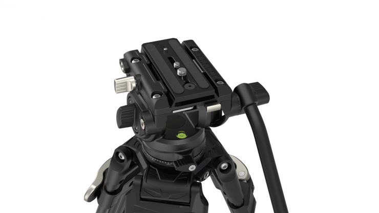 The fluid head allows you to use the included Manfrotto-style quick release plate or the original DJI RS 2, RS 3, or RS 3 Pro quick release plate with the flip of a simple switch. The 75mm half ball head can pan 360° and tilt +90/-65°, and it can support up to 6.6 lb with its preset counterbalance system with precise control. The snap-in quick release plate features 1/4″-20 and 3/8″-16 camera screws to accommodate all camera types. Other features include a bubble level, 1/4″-20 accessory threads, and a fixed pan bar. It also features adjustable rubber feet.