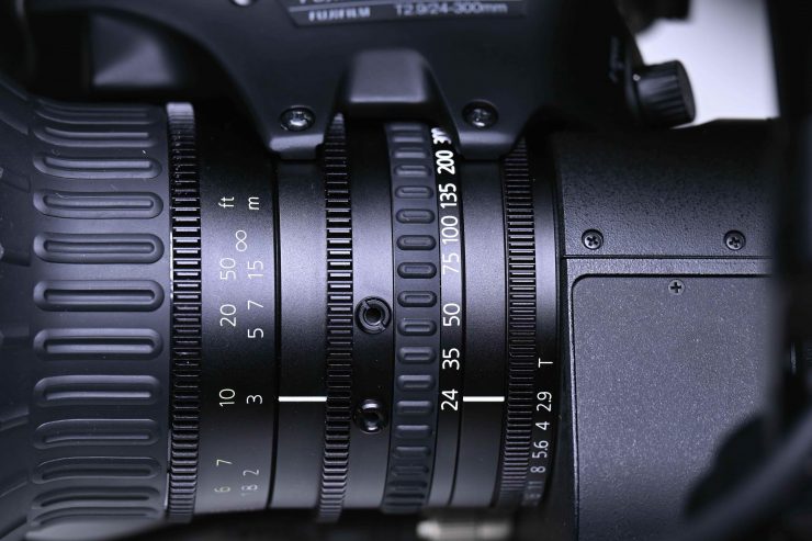 At 24mm, the lens can focus at a distance of just 10.65″ / 27.05cm. It also features a built-in macro adjustment like you find on a lot of ENG 2/3″ lenses.