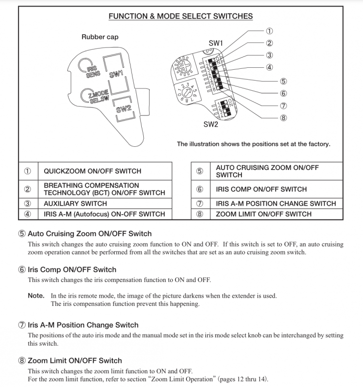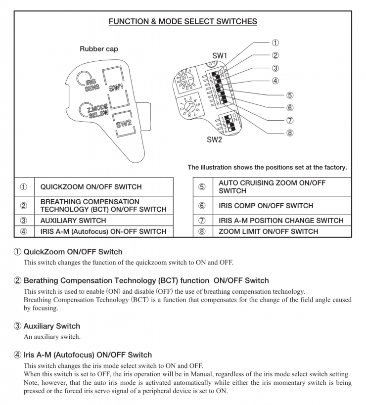 Just like on most of the FUJINON servo units, there is a removable rubber cover that lets you change some of its parameters.