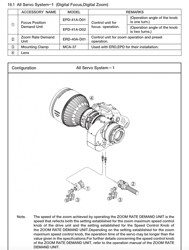 The lens can also be operated in the same shooting style as broadcast lenses using zoom and focus demands.