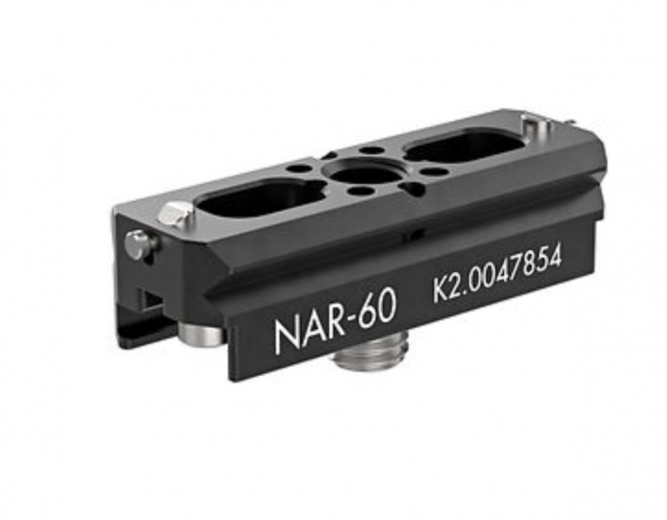 NATO Rail with 60mm length including a sliding 3/8in ARRI pin-lock/multi-hex screw which can be used with 4 different tools. Other sliders (1/4in + M4) are available and interchangeable.