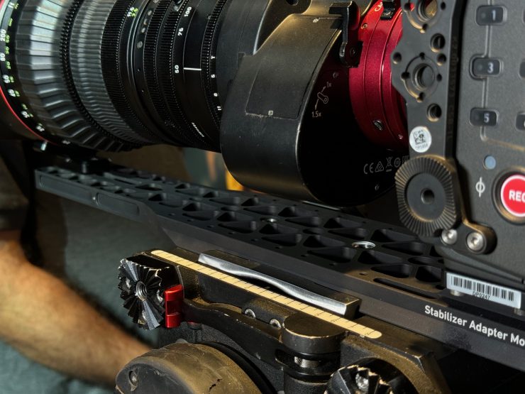 At Cine Gear 2024 in Los Angeles, ARRI was showing its new SAM-10 plate which allows you to use very long and heavy lenses like the Canon CINE-SERVO 50-1000mm T5.0-8.9 zoom without needing rods.