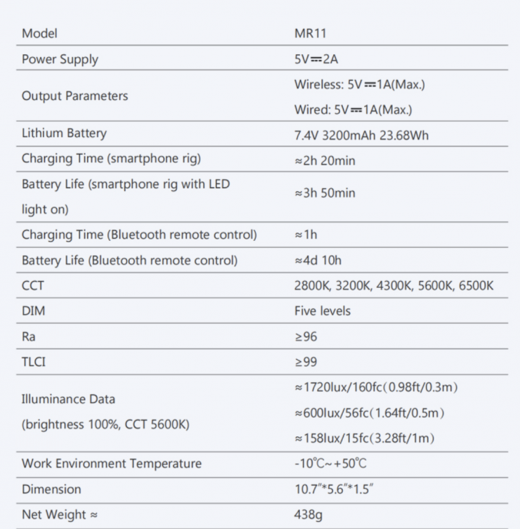 The ZENIKO MR11 Smartphone Video Rig weighs 438g / 0.96 lb. It has physical dimensions of 10.7″ x 5.6″ x 1.5″ / 27.17cm x 14.22cm x 3.81cm.