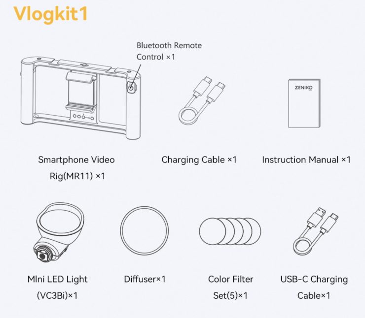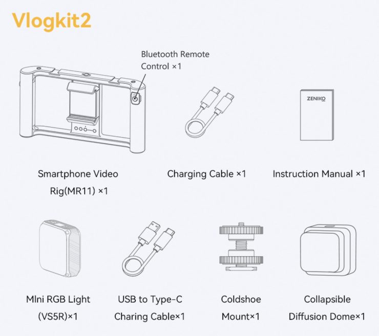 You can buy two different kits, the Vlogkit 1 ($159 USD) and Vlogkit 2 ($169 USD). Below you can see what they come with.