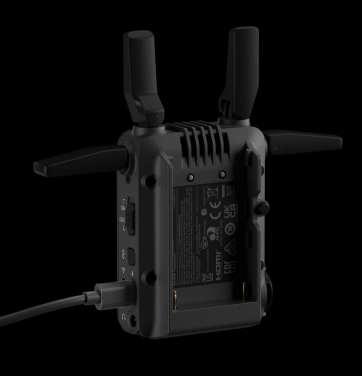 Thanks to the integrated power supply design, when used with DJI RS 4 Pro, DJI RS 4, or DJI RS 3 Pro, the transmitter can be mounted on the gimbal and powered directly by it, eliminating the need for a separate battery.