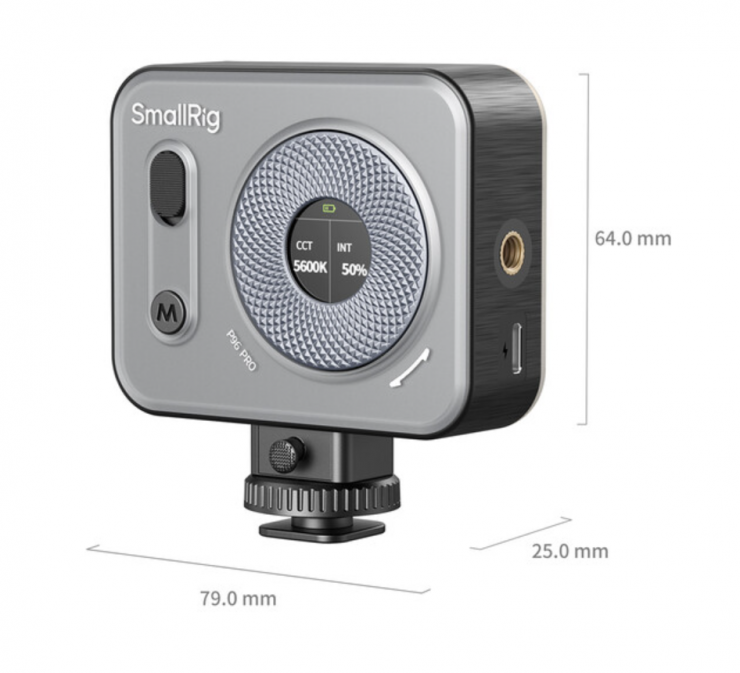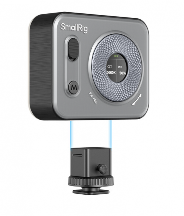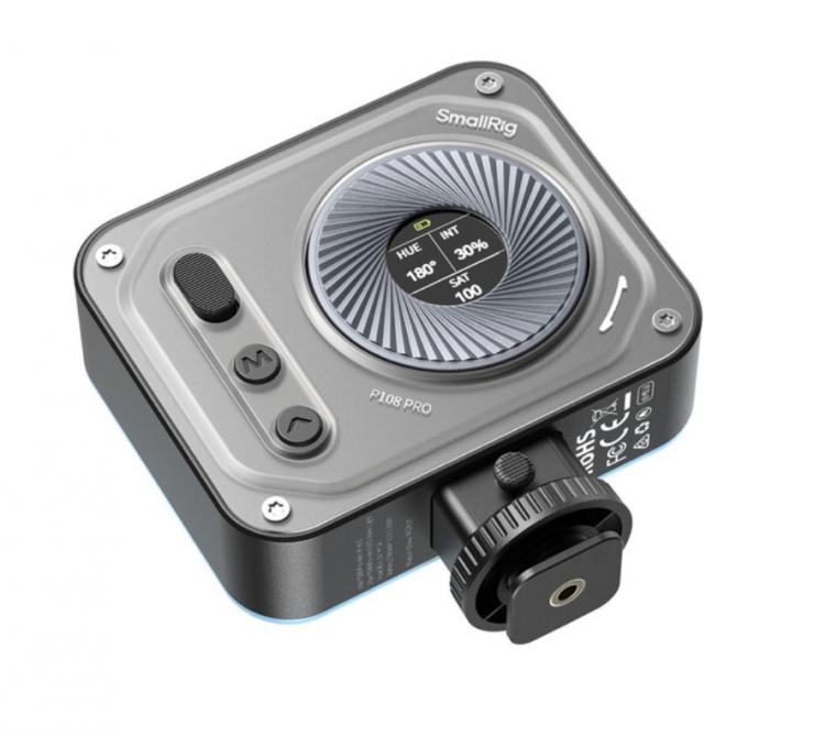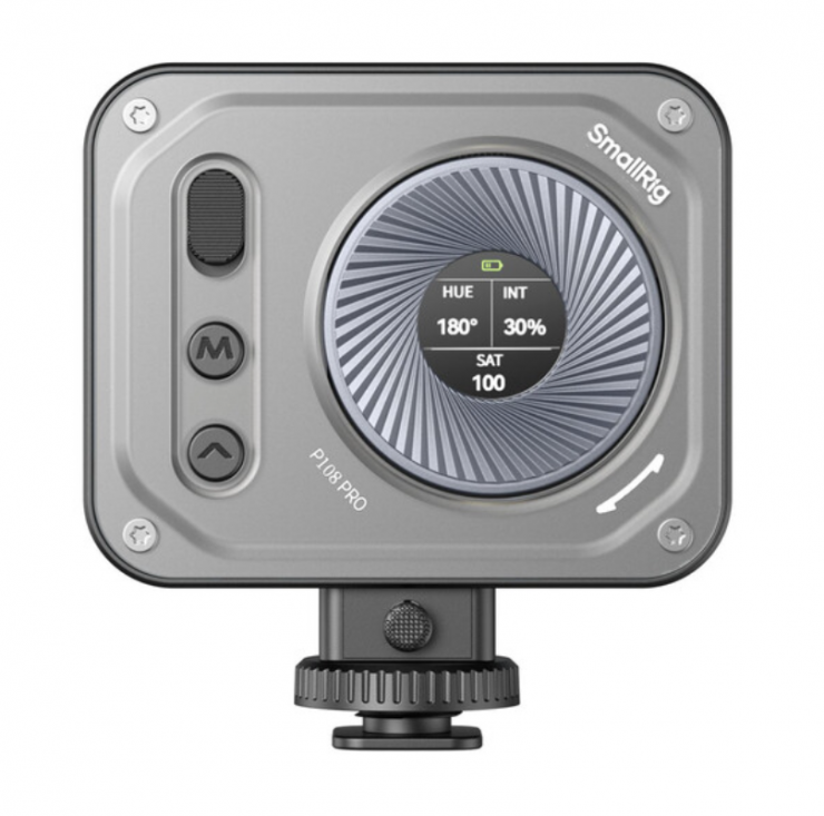 The SmallRig Vibe P96 Pro Mini LED Video Light features a ring-shaped metal stepless knob design and it includes an embedded color LCD screen. The integrated quick release cold shoe base enables transitions between various lighting setups.