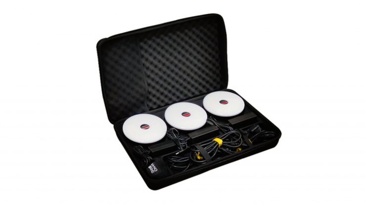 The Vibesta Peragos RGBWW Disc 30C 3-Light Kit is a lightweight and compact lighting solution with variable color temperature, accurate color rendition, and power options. The kit includes 3 Peragos RGBWW 6.3″ Disc 30Cs, each with an AC adapter and mains cables. A hard case is provided for storage and transport.