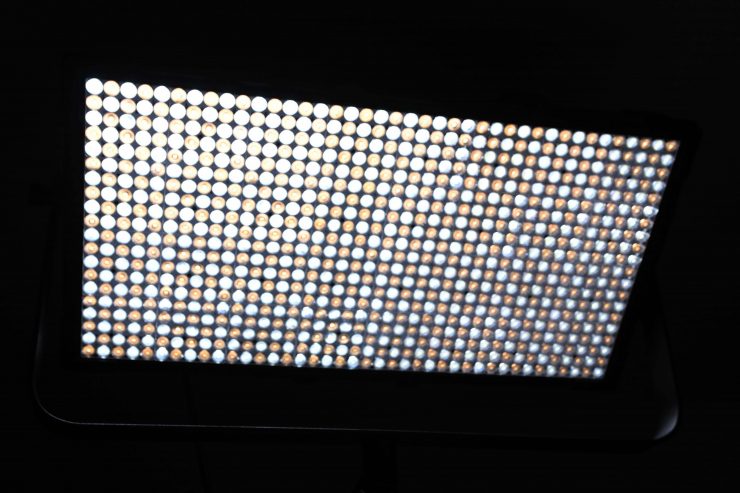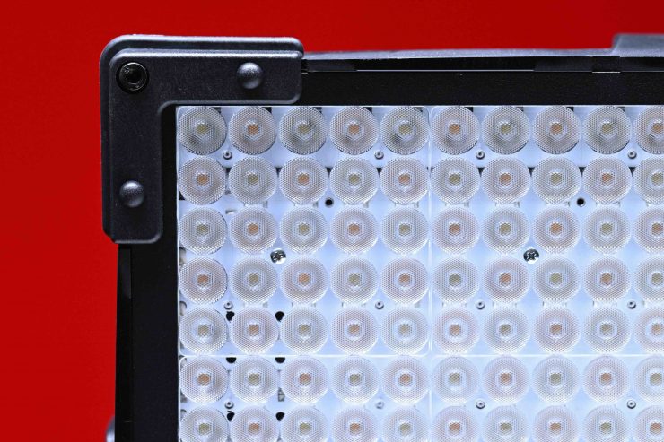 The SuperpanelPRO Dual Color Hard 60 is a hard light with a narrow beam angle and no front diffusion panel, and you will need to use some type of diffusion if you want to turn it into a softer source. It features 800 high CRI power LEDs. Each LED is housed behind what looks to be a mini holographic lens that is used to intensify and direct the light.