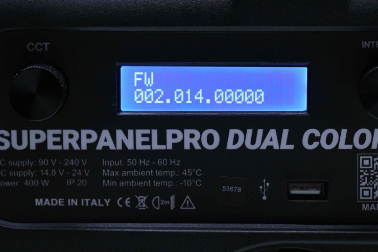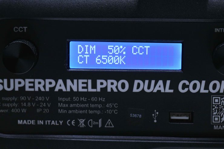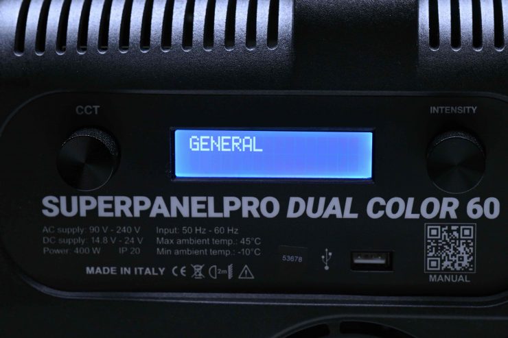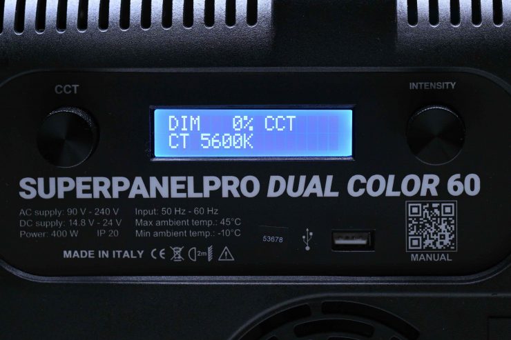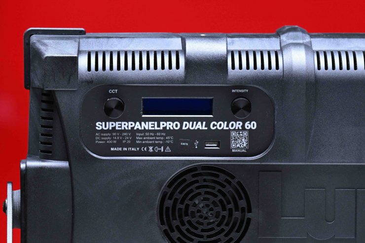 The SuperpanelPRO Dual Color Hard 60 has a simple digital display on the back of the light that lets you see and change the settings for intensity and color temperature.