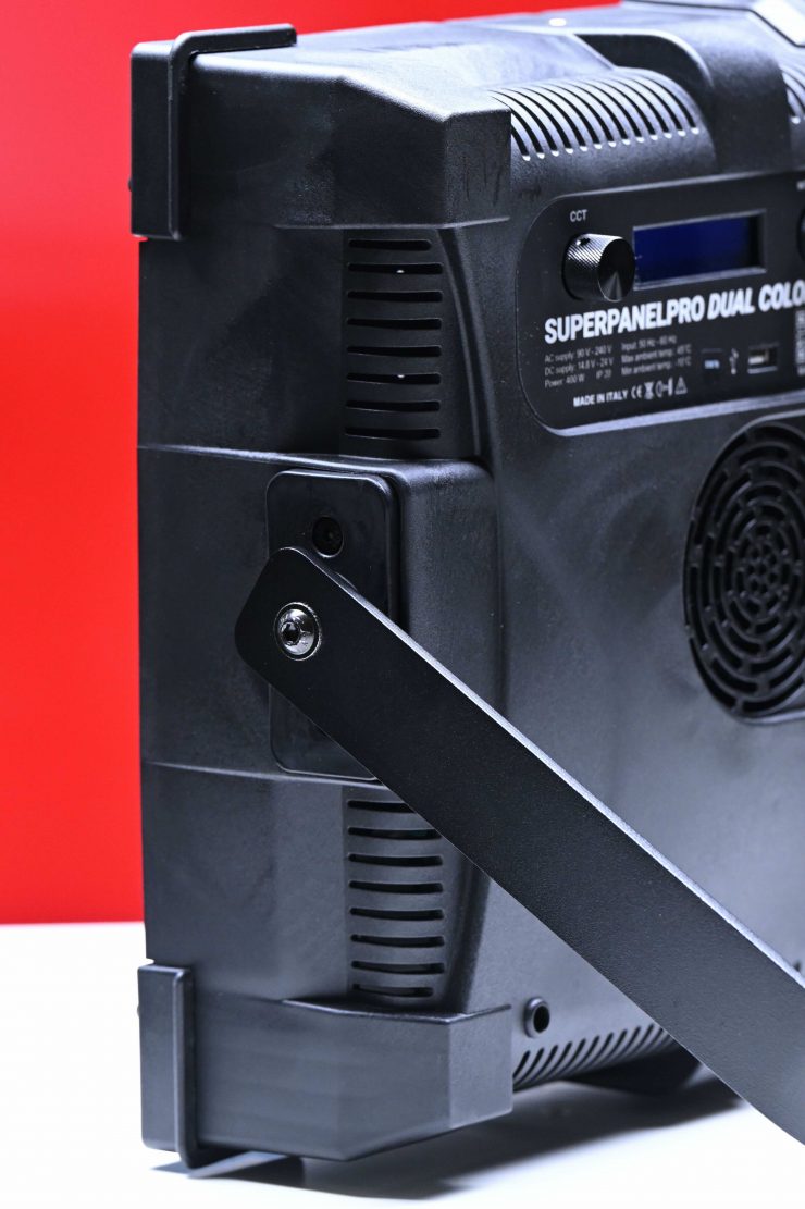 The caveat to having the higher power draw on the SuperpanelPRO Dual Color Hard 60 is that you can no longer run it at full power via a couple of flight-safe camera batteries like you could with the Superpanel Dual Color 60. Lupo also no longer sells V-mount battery plates for the new SuperPanelPro Dual Color Hard 60.