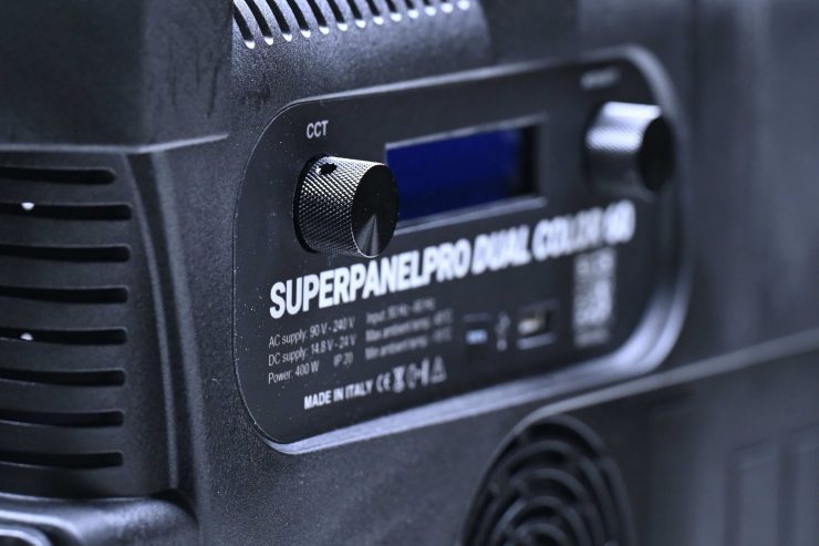 The SuperpanelPRO Dual Color Hard 60 draws 440W, which is a lot more than its predecessor the Superpanel Dual Color 60 which had a power draw of just 220W. I like that Lupo has now done away with having to attach two power supplies that were linked together. Instead, the SuperpanelPRO Dual Color Hard 60 now has an inbuilt power supply. This, at least in my opinion, makes it easier to use and quicker to set up.