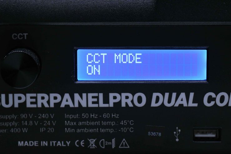 The SuperpanelPRO Dual Color Hard 60 is CCT adjustable from 2800K to 6500K with a claimed CRI and TCLI of 97 and 98 respectively. 2800-6500K is a decent range for a Bi-color fixture, and a lot of potential users of this light are probably going to be using a fixture such as this within that range the majority of the time.