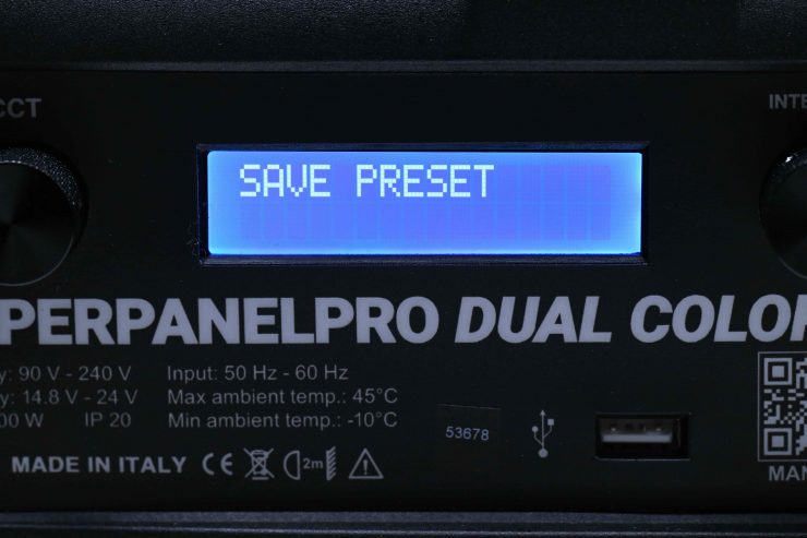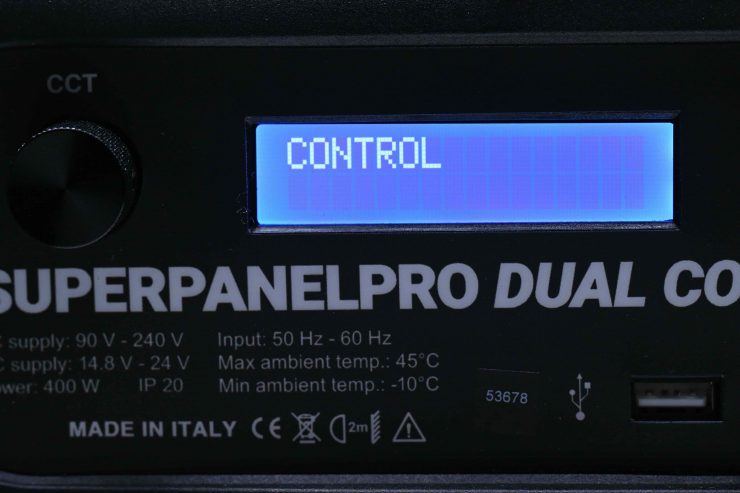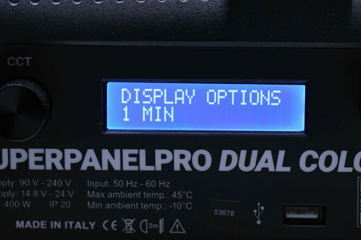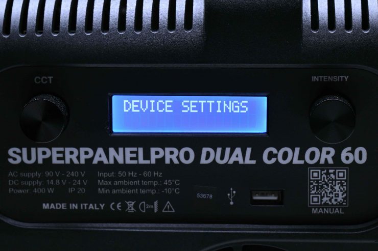 Just like other Lupo Superpanels, the onboard controls for the SuperpanelPRO Dual Color Hard 60 are very simplistic, as is the menu system.