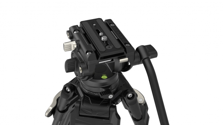 The fluid head allows you to use the included Manfrotto-style quick release plate or the original DJI RS 2, RS 3, or RS 3 Pro quick release plate with the flip of a simple switch. The 75mm half ball head can pan 360° and tilt +90/-65°, and it can support up to 6.6 lb with its preset counterbalance system with precise control. The snap-in quick release plate features 1/4″-20 and 3/8″-16 camera screws to accommodate all camera types. Other features include a bubble level, 1/4″-20 accessory threads, and a fixed pan bar. It also features adjustable rubber feet.