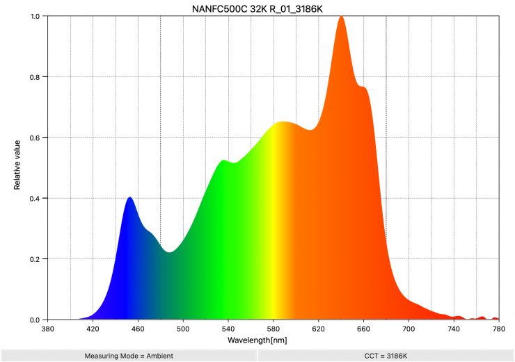 Above you can see the spectral distribution of the FC-500C when it is set at 3200K. The spectral distribution wasn’t overly full.
