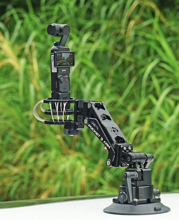 The shock absorber arm deluxe edition combines CAME-TV’s shock absorber arm with an isolation cradle and a suction cup, making it easy to install a variety of lightweight camera equipment such as the OSMO pocket or similar cameras.