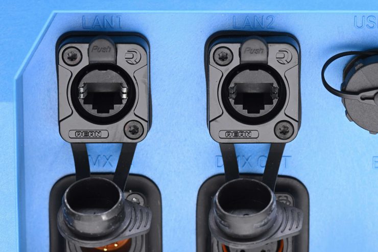 The SkyPanel X features a very similar Control Panel that comes with the Orbiter. It features built-in wireless control, two Ethernet ports, LumenRadio CRMX2, and Bluetooth 5.0. The IP66 rating also applies to the ALL-WEATHER Control Panel.