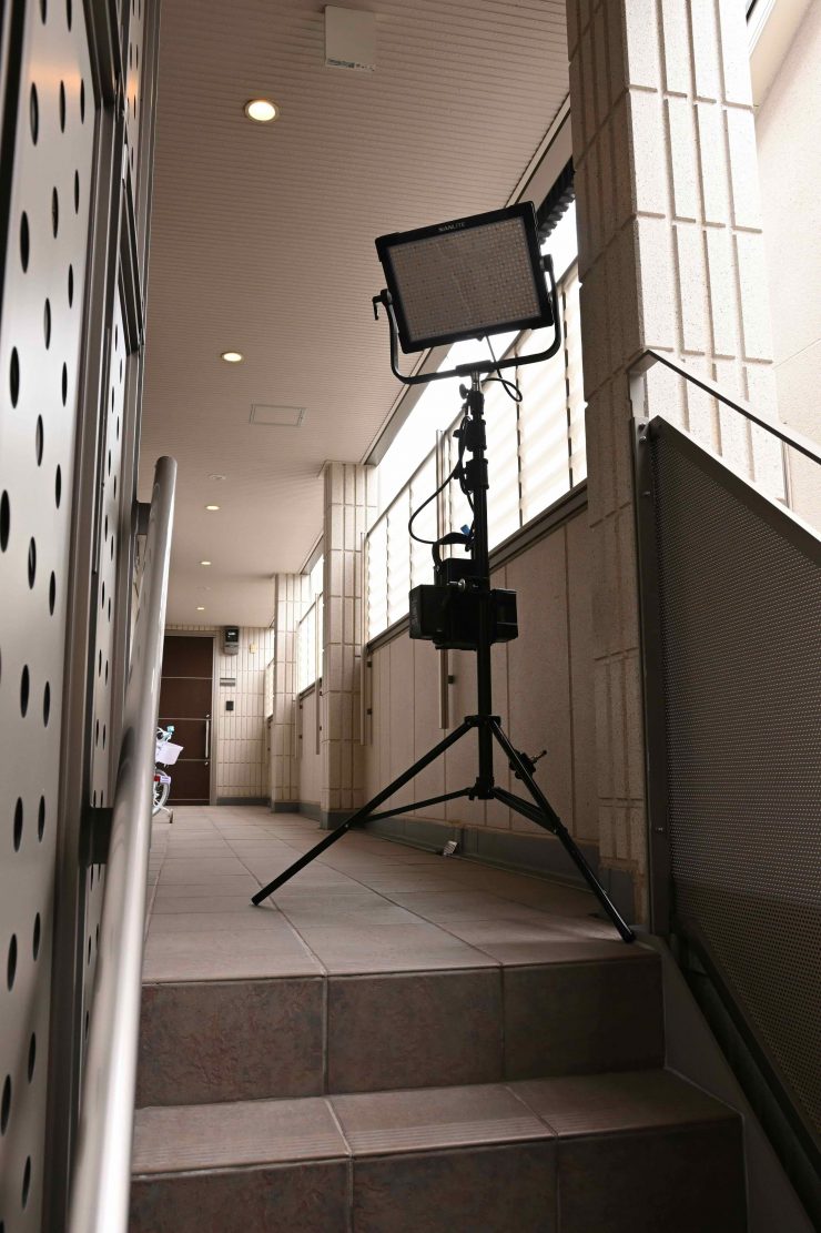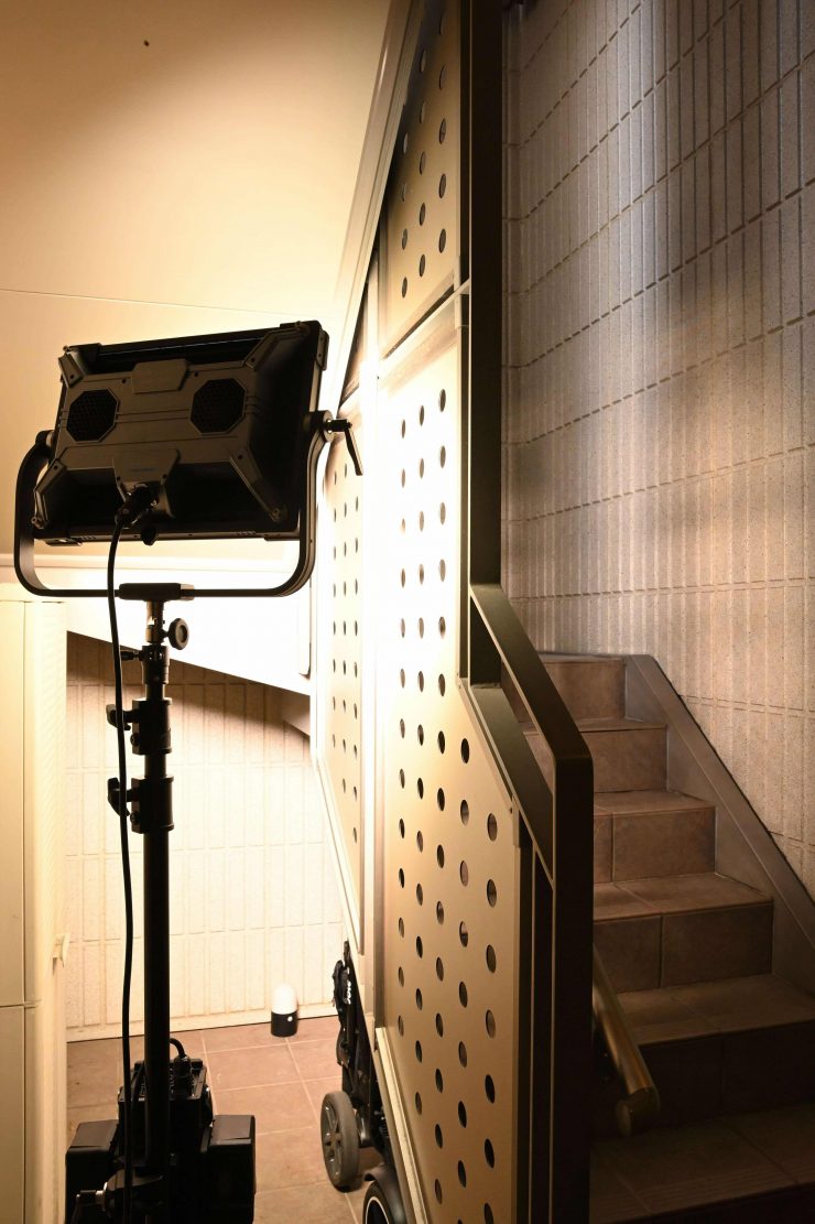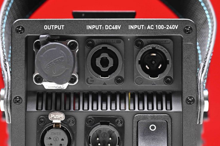 The power supply/controller for the fixture isn’t overly large. You can attach the power supply directly to the V-mount wedge plate adapter that comes in the kit, or you can put it on the ground or hang it from a light stand, etc.