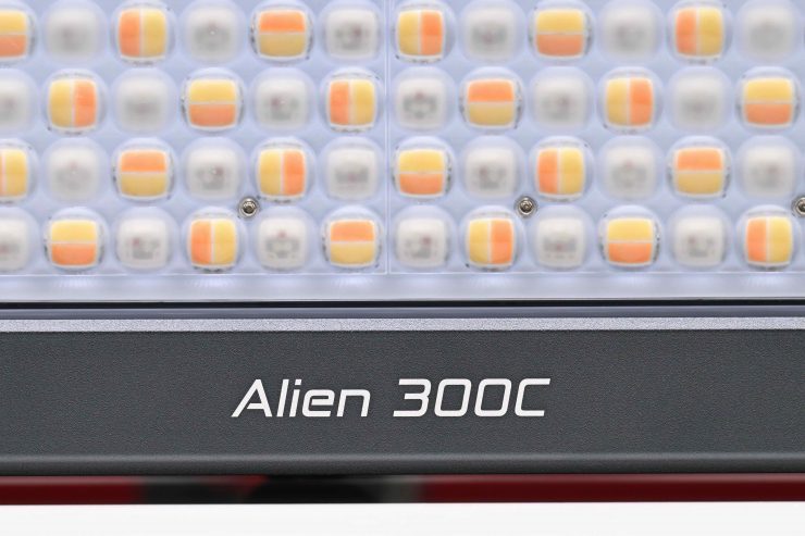 The Alien 300C features an advanced optical design, with light mixing technology and alternately laid and rotated WW and RGB light beads. This combination allows it to output a very bright and even beam. At 5600K the readings at 1m / 3.3′ is claimed to be 28,630 lux.