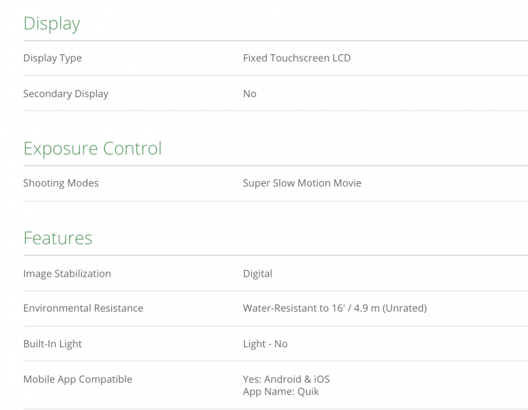 The HERO can capture High Dynamic Range (HDR) Photo and Video. Video can be captured in 4K up to 30p and 4K in 10-bit. You can capture 2.7K at up to 60p.
