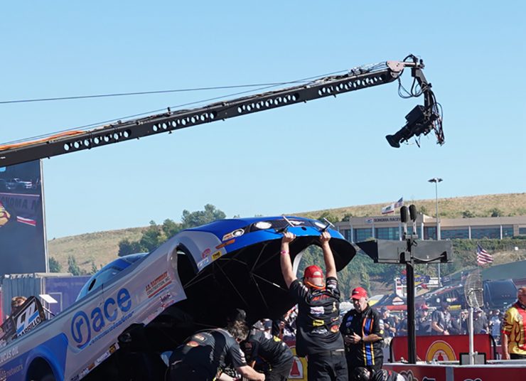This camera is also compatible with the camera control units HDCU-5000 and HDCU-5500, as well as the IP camera extension adapter HDCE-TX50. The camera control units and IP extension adapter allow for long-distance connections of up to 10km using single-mode fibre. This makes it possible to utilize them in shooting locations that are far away from the relay vehicle system, for example in golf broadcasts. When connected to the camera control unit, it enables slow-motion shooting at up to 4 times the speed in 4K and up to 8 times the speed in HD.