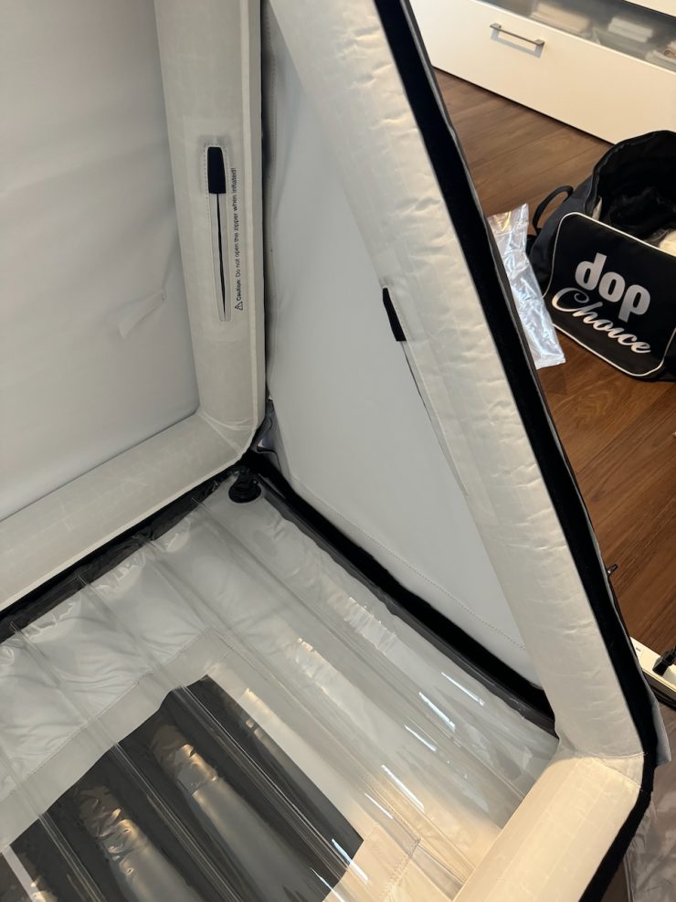 Setting up the AIRGLOW from scratch the first time isn’t a simple process and it is not a lighting modifier that you can use quickly. I would say you need to allow at least 5-10 minutes minimum to construct it if you are doing it for the first time. You also need a bit of space to do this as you need to lay everything out, especially when you are doing the inflation.