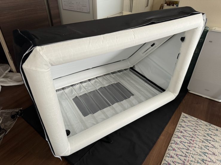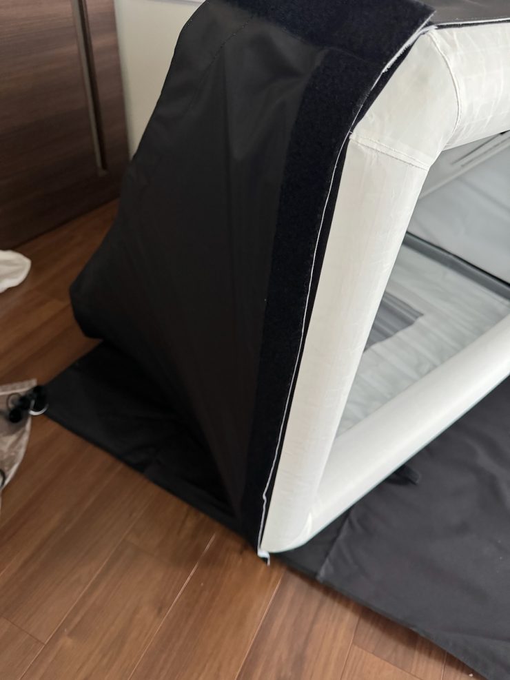 The next step is to attach the material to the back wall of the AIRGLOW. I found this a little tricky to do as it needs to be attached to a bunch of small velcro tabs. In the kit, you get Quarter, Half, and SNAPCLOTH.