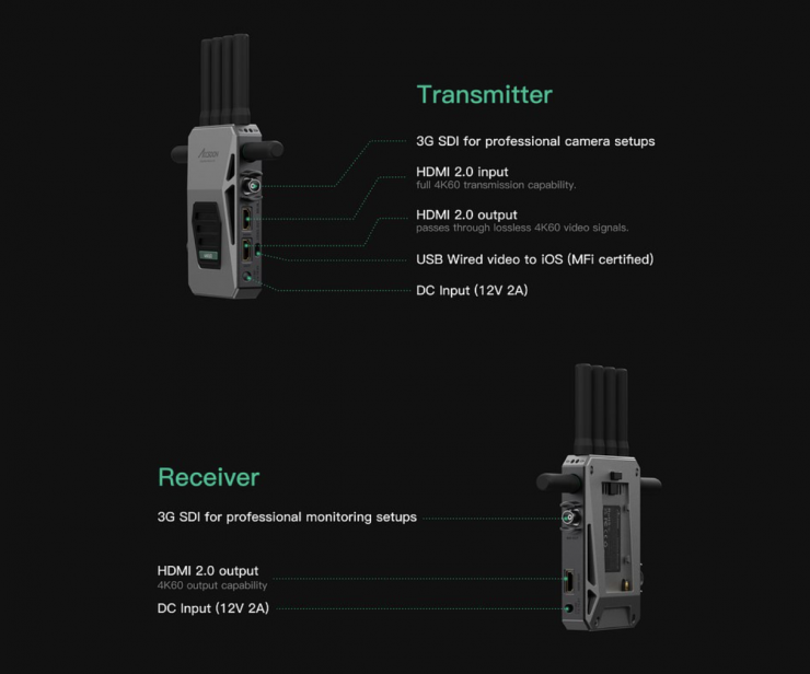 Accsoon has long been a leading innovator in wireless video. Now for the first time, it is bringing a true 4K 60P to Wi-Fi based wireless video systems. This fully end-to-end 4K solution offers 4K on both wireless and wired connections. It allows: